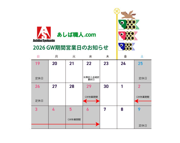 • 2026.04.062026年 GW休業のお知らせ