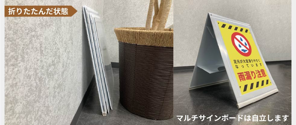上辺を強力マジックテープで留めることで、マルチサインボードのみで自立も可能です。