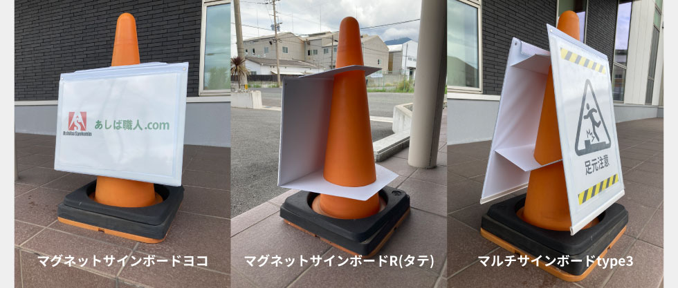 三角コーンに装着・または自立可能な両面標示ボードです!