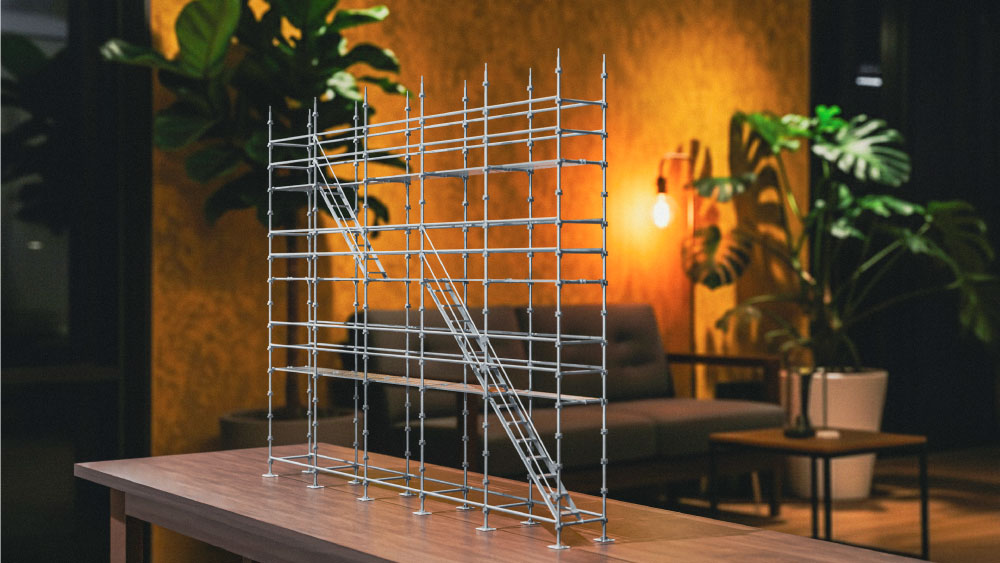 3Dプリンティング技術で精巧に再現しました。足場施工にかかわる研修から、インテリアやジオラマに活用いただけます。